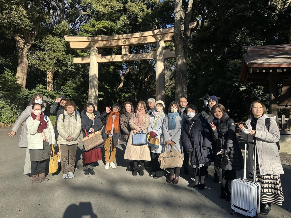 当日は、まず最初に明治神宮参拝希望者が、朝9時に一の鳥居の前に集合しました。