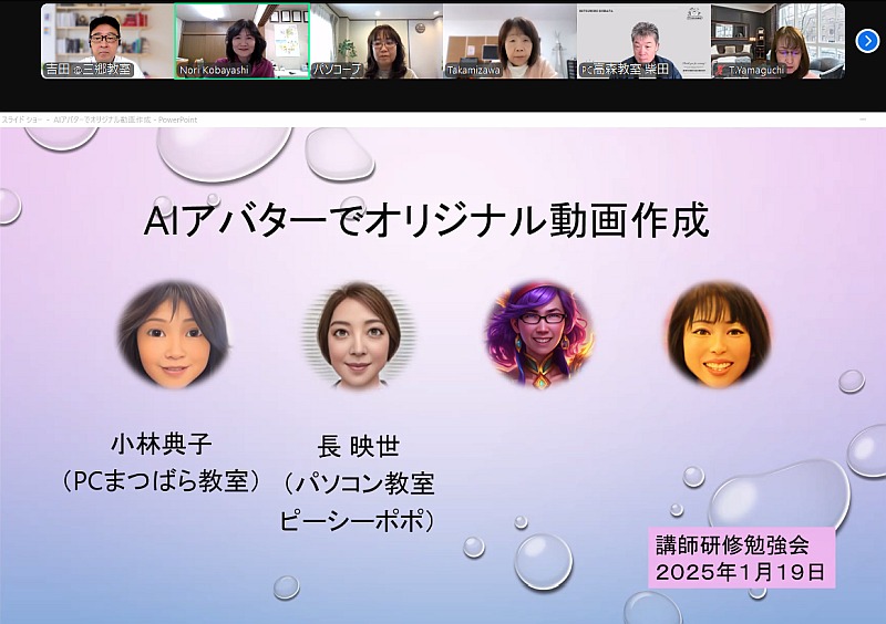 1月19日(日)9:15~、パソコープ会員教室向け勉強会「AIアバターでオリジナル動画作成!」をZoomオンラインにて実施しました。
