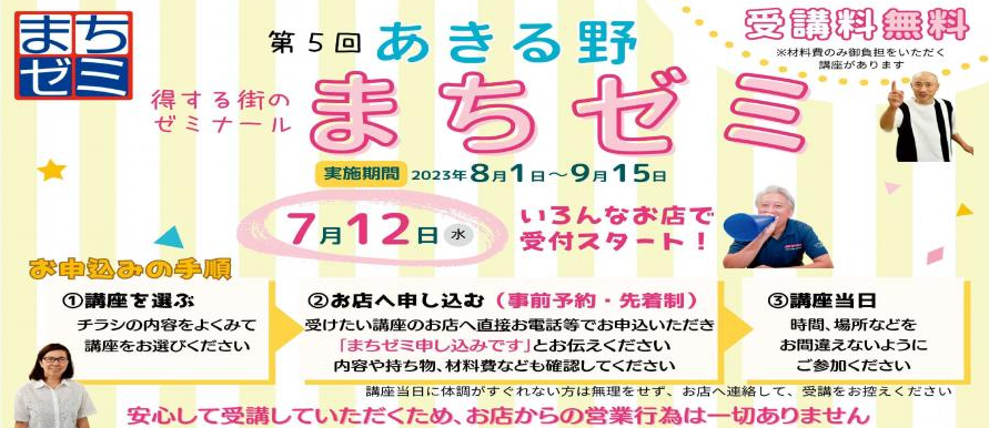 得する街のゼミナール「第5回 あきる野まちゼミ」(実施期間 2023年8月1日~9月15日)が、今年も開催されます