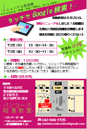| 開催概要: | タブレット・スマホ・PCでgoogle検索してみよう! |