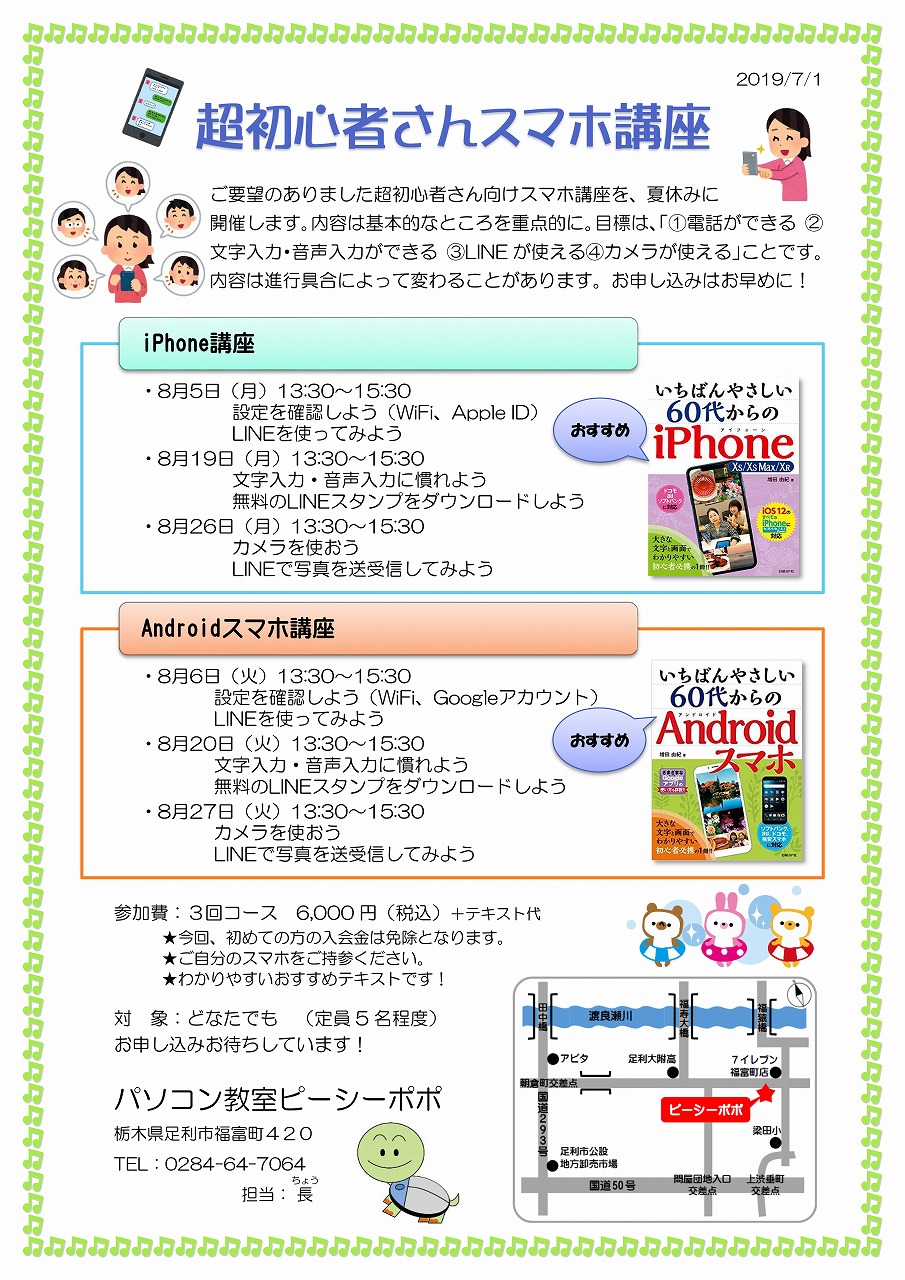 ご要望のありました超初心者さん向けスマホ講座を、夏休みに開催します。