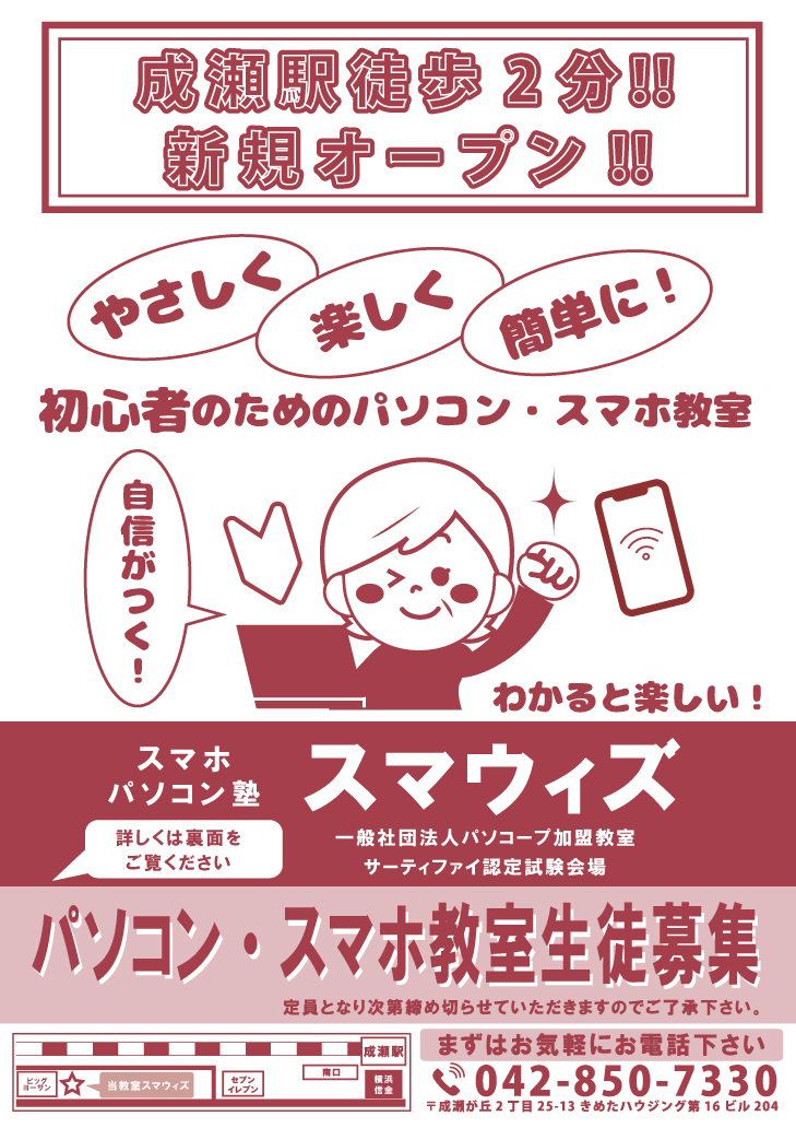 開催期間:2023-05-22~2023-05-25パソコン・スマホ初心者向け教室が新規オープンにあたり、無料体験会を開催いたします!