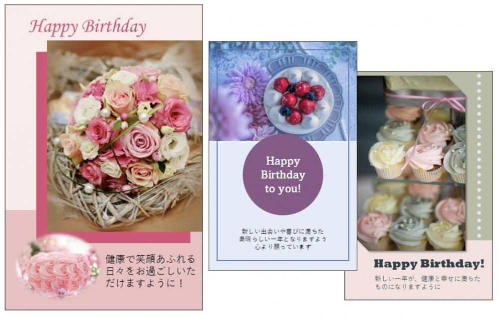 練習問題には、誕生日のポストカードや季節のポストカードの作品例を用意しています。