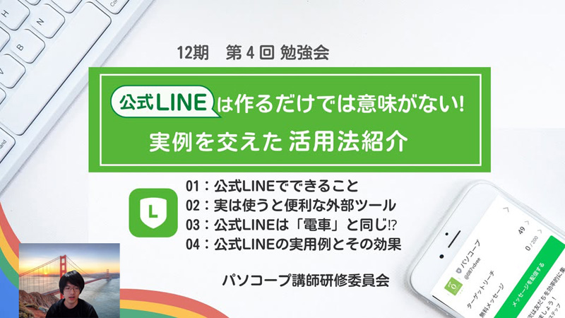 会員教室向け「「公式LINEは作るだけでは意味がない! 実例を交えた活用法紹介」」勉強会を実施しました。5月25日(日)9:15~、パソコープ会員教室向け勉強会「「公式LINEは作るだけでは意味がない!実例を交えた活用法紹介」」をZoomオンラインにて実施しました。 詳細はこちら