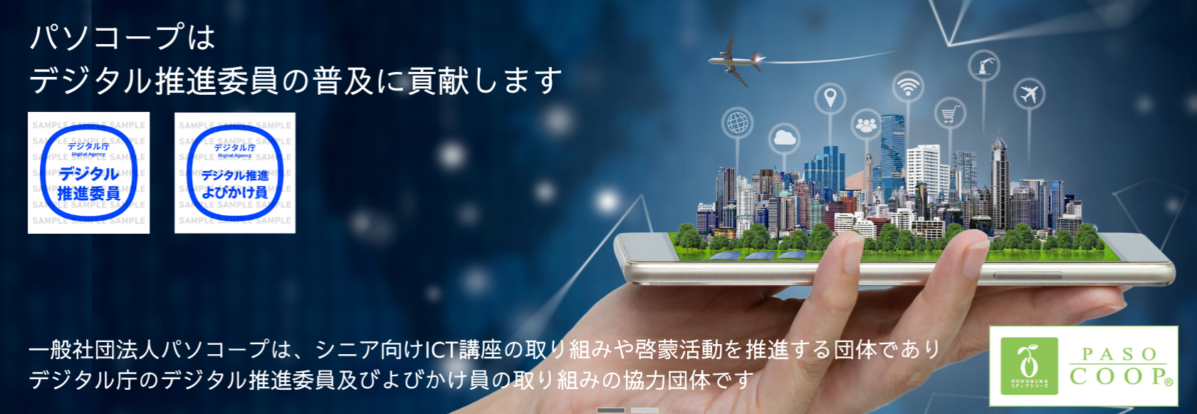 パソコープはデジタル推進委員の取り組みを推進していますパソコープは、デジタル庁が推進する「デジタル推進委員」および「デジタル推進よびかけ員」の取組の協力団体です。このたび、取り組みを紹介するサイトを作成しました。 詳細はこちら