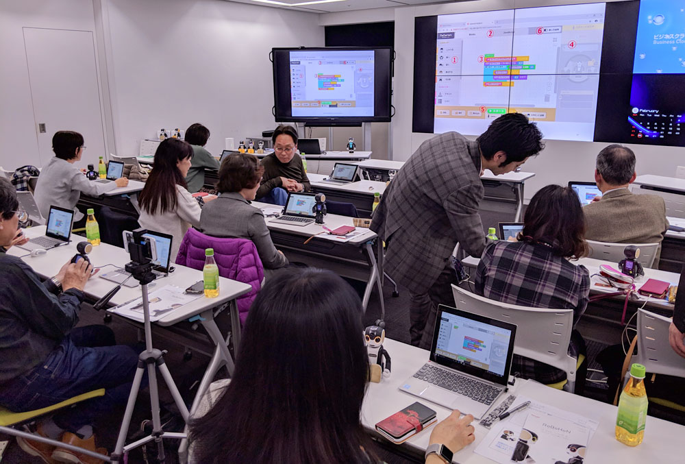 2/25(月)、会員教室向け勉強会の一環で「ロボホン・プログラミング勉強会」がシャープ株式会社 東京ビルにて開催されました。
