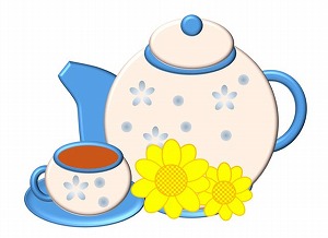 基本図形の中の楕円をいくつも重ねて、カップ・ソーサー・ポット・模様・花を描きます。 いろいろな効果を使用して立体的に仕上げていきましょう。