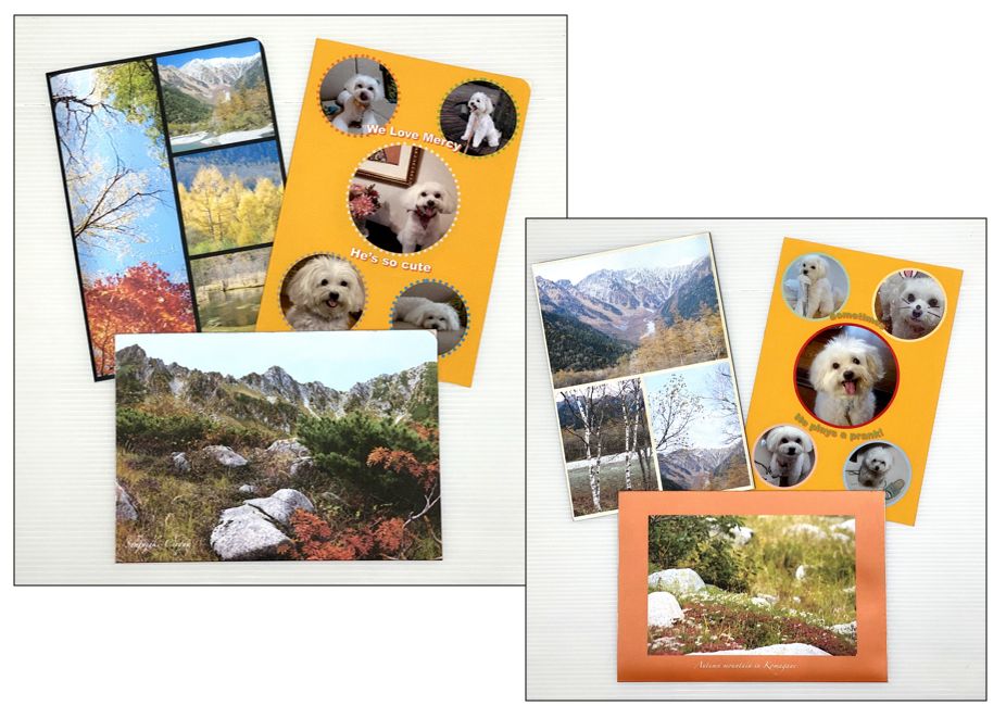 ペットやキッズの写真、旅行や行事の写真などで楽しくデザインして、ペット仲間や旅行仲間へのプレゼントにもご利用ください。