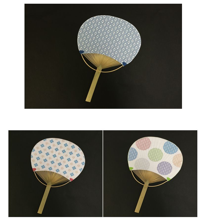 こぎん刺し模様の竹うちわを作りましょう。Eテキスト「E10-0068:Excelで日本の伝統模様を作ろう」で作成したこぎん刺し模様をもとにパターン素材を作ります。図形を作成してパターン素材で〔図の塗りつぶし(テクスチャ)〕を設定すると、こぎん刺しの美しい連続模様になります。好きな色合いにデザインして印刷し、竹うちわの骨にていねいに貼り付けて仕上げます。浴衣やインテリアに合い、軽くて見た目も涼しげな竹うちわの完成です。