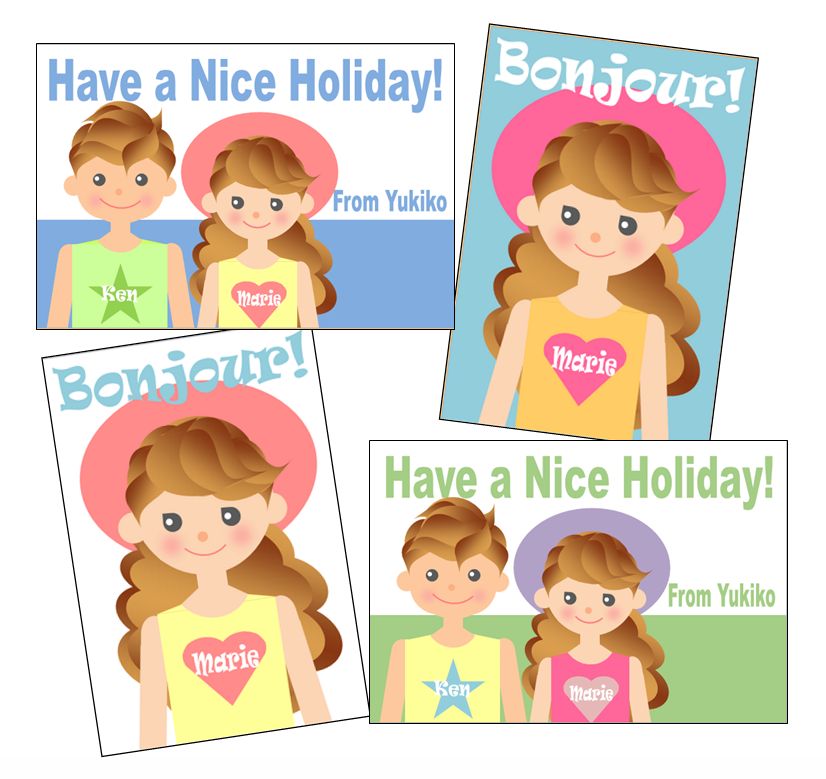 Wordのシェイプアートで絵を描きましょう。図形を組み合わせて、女の子のキャラクターを作成します。キャラクターを作っておくと、顔やヘアスタイル、ファッションを変えるだけで、別のキャラクターを作成することができます。練習問題では男の子を描いて、季節のお便りカードを作ってみましょう。
