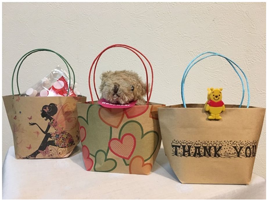 サンプル以外にも、好きなイラストを入れたり、思い思いの素敵なオリジナルミニ手提げを作ってみてくださいね。